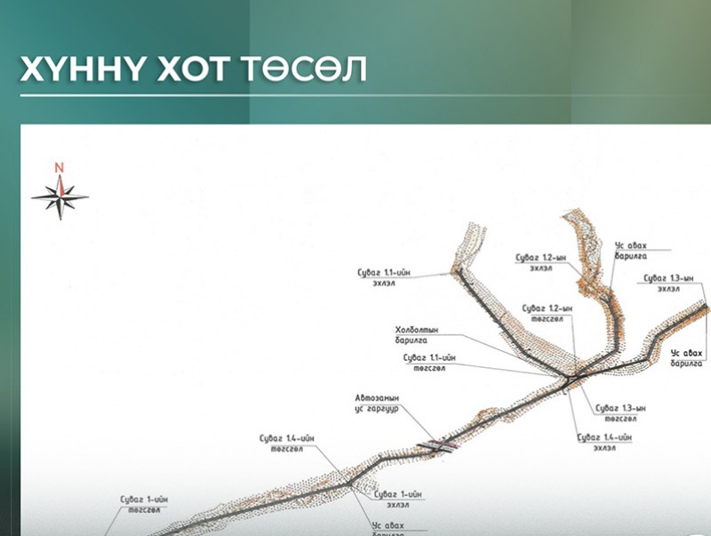 - Суваг-1.4. 1745м, газар хайрган хөрс зөөвөрлөн байгалийн гуу жалга дүүргэж булалт нягтруулга хийсэн. Шүд цутгах ажил 98 хувь гүйцэтгэлтэй, сувгийн төмөр бетон хавтан угсрах, элсэн дэвгэр, нягтруулгын ажил, бетон хавтан хоорондын чигжээс бетон гагнаасын ажлууд хийгдэж байна.