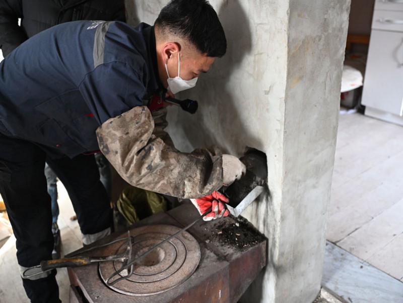 | Айлуудын янданг хөөлж, ханан пийшин, зуухыг засварлаж байна | ||