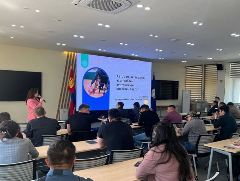 Нийслэлийн Засаг даргын Тамгын газар, нийслэлийн Замын хөгжлийн газартай хамтран зам засварын ажил эрхэлж буй аж ахуйн нэгж байгууллагын төлөөлөл, удирдах албан тушаалтанд хөгжлийн бэрхшээлтэй хүний талаарх ойлголт хандлага, тэдэнд тулгарч байгаа бэрхшээлийн талаар сургалт зохион байгуулж, санал солилцсон.