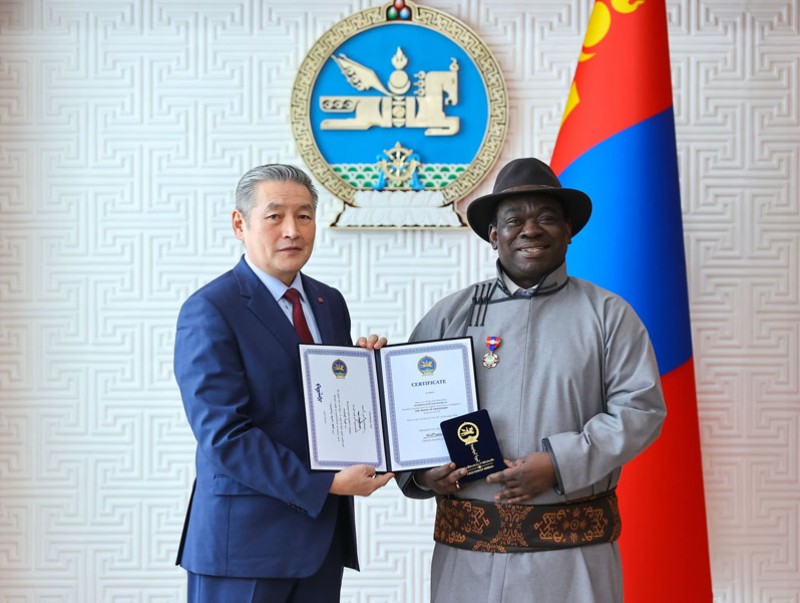 Монгол Улсын Ерөнхийлөгч Ухнаагийн Хүрэлсүхийн зарлигаар НҮБ-ын Хүүхдийн сангийн Суурин төлөөлөгч Эваристе Коуасси-Комланыг “Найрамдал” медалиар шагнасныг Монгол Улсын Ерөнхийлөгчийн Ахлах зөвлөх Н.Хүрэлбаатар гардуулав.
