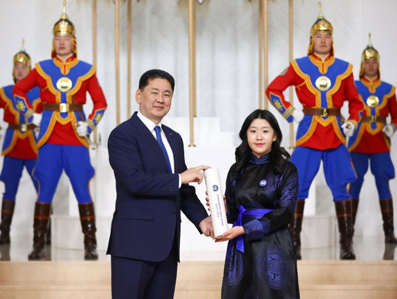 Тэтгэлэгт хөтөлбөрийн эзэд болж, эх орондоо бэлтгэл хөтөлбөрт суралцаж байгаа оюутнуудад Ерөнхийлөгч У.Хүрэлсүх сурлагын өндөр амжилт хүсэж, захиа, даалгавар гардууллаа.