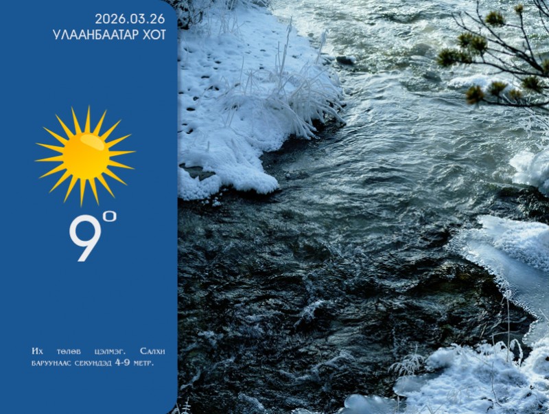 УЛААНБААТАР ХОТ ОРЧМООР: Их төлөв цэлмэг. Салхи баруунаас секундэд 4-9 метр. 7-9 хэм дулаан байна.