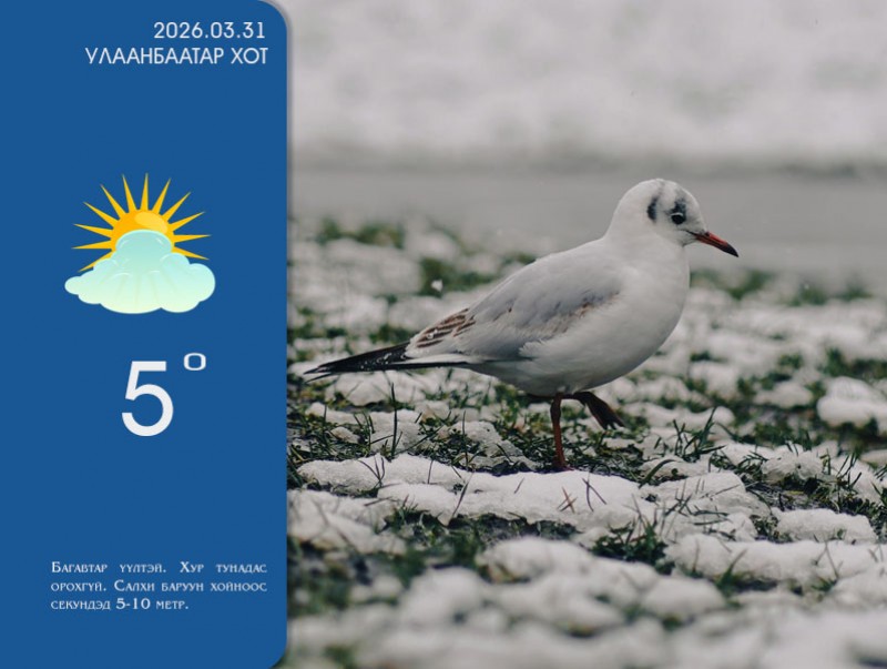 УЛААНБААТАР ХОТ ОРЧМООР: Багавтар үүлтэй. Хур тунадас орохгүй. Салхи баруун хойноос секундэд 5-10 метр. Өмнөх өдрөөс 7 хэмаар сэрүүсэж 3-5 хэм дулаан байна.