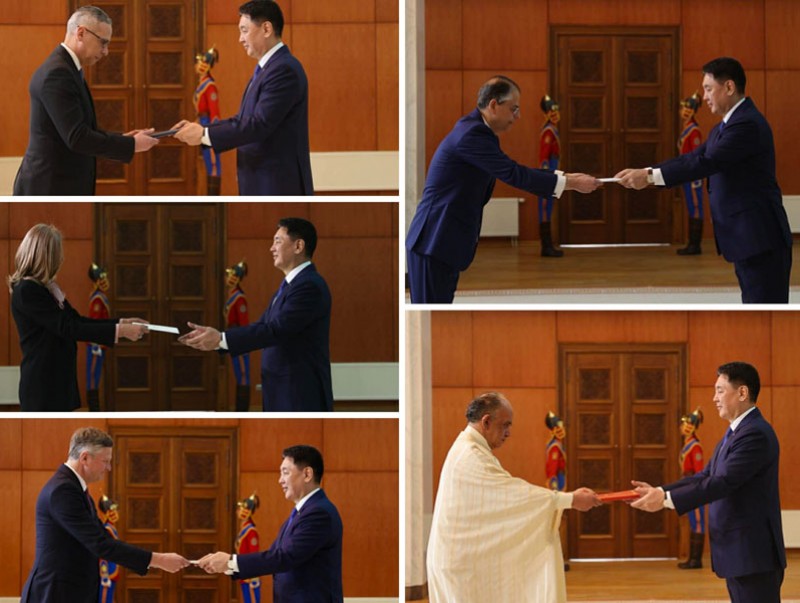 Монгол Улсын Ерөнхийлөгч Ухнаагийн Хүрэлсүхэд гадаадын орнуудаас Монгол Улсад хавсран суух Элчин сайдууд Итгэмжлэх жуух бичгээ өргөн барилаа.