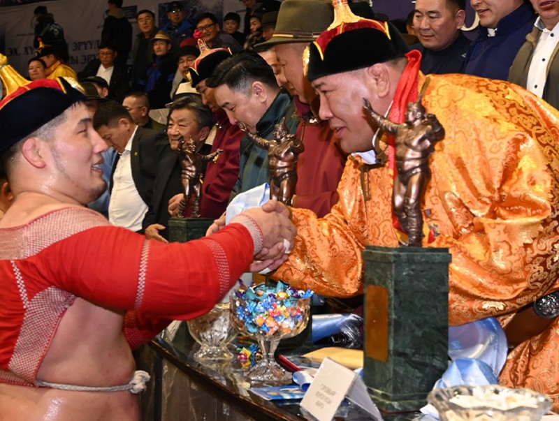 Зохион байгуулагчдын зүгээс “Уран барилдааны шагнал”-ыг аймгийн арслан С.Доржпаламд гардуулсан юм.