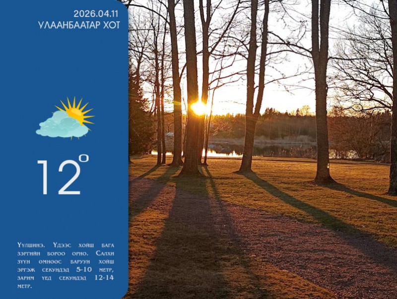 | ЦАГ АГААР: Улаанбаатарт өдөртөө 12 хэм дулаан | ||