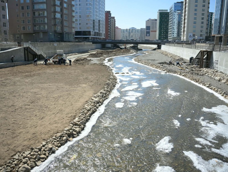“Силла констракшн” ХХК-ийн ерөнхий менежер Х.Халиун “Тохижилтын ажил үргэлжилж байна. Голын эрэг дагуу ногоон байгууламжийн үрслэгээний хөрсийг тавьж байна. Шөнөдөө нэмэх хэмд хүрсний дараа олон наст ургамлын үрийг суулгана. Голын хоёр талын явган замын ажил хийгдэж байна. Газар шорооны ажил 90 хувьтай байна” гэв.