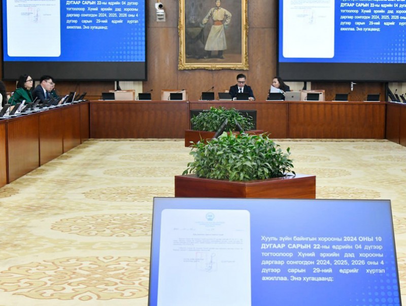 Улсын Их Хурлын Хууль зүйн байнгын хороо өнөөдөр /2026.04.29/ Төрийн ордны “Жанжин Д.Сүхбаатар” танхимд 60.5 хувийн ирцтэй хуралдаж, 5 асуудал хэлэлцэн шийдвэрлэлээ. Хуралдааныг Улсын Их Хурлын гишүүн Л.Соронзонболд даргалав. Байнгын хорооны хуралдаанаар эхлээд Хүний эрхийн дэд хорооны 2025 он, 2026 оны 1 дүгээр улирлын үйл ажиллагааны тайлан, Хүний эрхийн дэд хорооны даргыг сонгох тухай Байнгын хорооны тогтоолын төслийг хэлэлцсэн.
