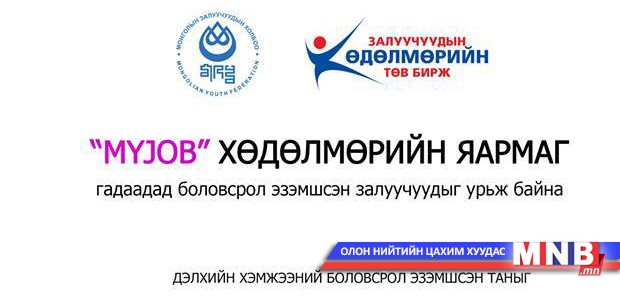 Монголын Залуучуудын Холбооны дэргэдэх Залуучуудын Хөдөлмөрийн Төв бирж гадаад руу алдаж буй өндөр чадвар, оуюны урсгалыг эргэн ирэх уриалга гаргах, буцах хөдөлгөөний эхлэлийг тавьж Монголын төр, хувийн хэвшлийн бүх салбаруудад тулгарсан чадварлаг хүний нөөцийн хомсдолын асуудлыг нээлттэй ажлын байрны өдөрлөгийг зохион байгуулах замаар шийдвэрлэх зорилгоор “MY JOB” хөдөлмөрийн яармагийг “Монголдоо ажиллаж хөдөлмөрлөе” уриатайгаар энэ сарын 24-нд Монголын Залуучуудын Холбооны "Залуус танхим"-д зохион байгуулах гэж байна.