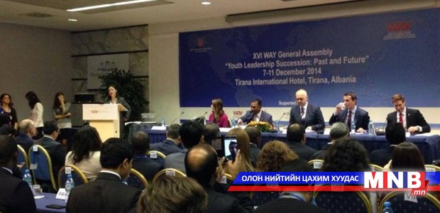 Албани Улсын Тирана хотноо Дэлхийн Залуучуудын Ассемблейн чуулга уулзалт“Залуучуудын Манлайлал- Өнгөрсөн ба Ирээдүй” сэдвийн дор энэ арванхоёрр сарын 7-11-ний өдрүүдэд болж байна. Чуулганыг нээж Албанийн ерөнхий сайд Эди Рама, Албанийн Нийгмийн Хамгаалал, Залуучуудын сайд Эрлон Вэлиаж, Дэлхийн Залуучуудын Ассемблейн ерөнхийлөгч Датук Сэри Идрис Харон, Дэлхийн Залуучуудын Ассамблейн (ДЗА) ЕНБДЭдиола Пашолиари,ДЗА-н сайн үйлсийн элч Масиэли Луша нар чуулганы нийт оролцогчдод амжилт хүсч үг хэллээ.