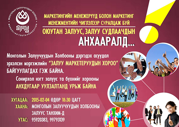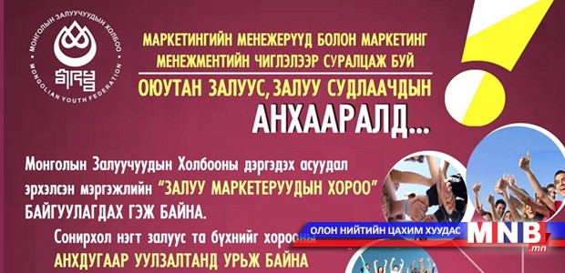 Тэгвэл энэ удаад “Залуу маркетеруудын хороо”-г шинээр байгуулах гэж байна. Энэ хороо нь тухайн чиглэлийн залуусын асуудлыг хөндөж гаргах, түүнийг хэрхэн шийдвэрлэх гарц олох, хамтдаа хөгжих, мэргэжлийн цар хүрээгээ тэлэх, түүнийг нийгэмд таниулах чиглэлээр үйл ажиллагаа явуулах бөгөөд залуусын оролцоог нэмэгдүүлэх, хамтран ажиллах боломж бололцоог бүрдүүлэх зорилготой аж. Тиймээс энэ чиглэлээр суралцаж буй оюутан залуус, маркетингийн менежерүүд, судлаачдыг уг хороонд нэгдэхийг уриалж байгаа юм байна.