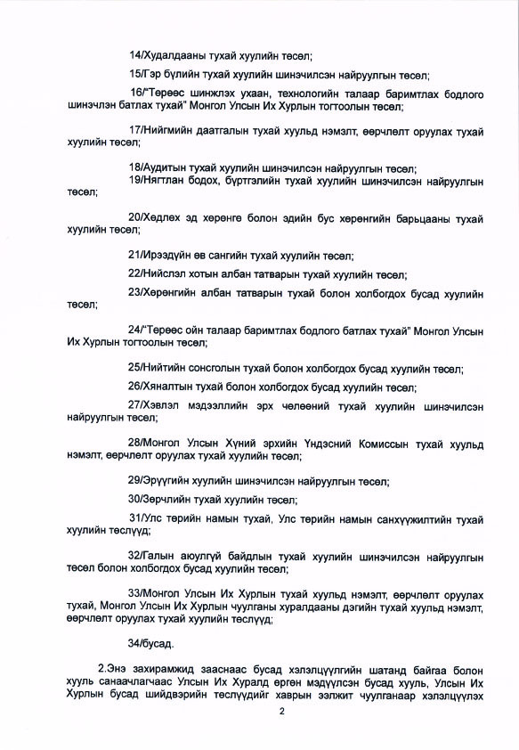 | УИХ-ын 2015 оны хаврын ээлжит чуулганаар хэлэлцэх асуудлын дарааллыг тогтоолоо | ||