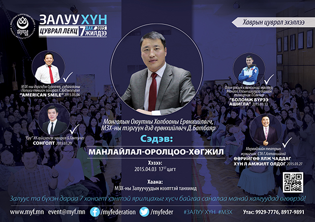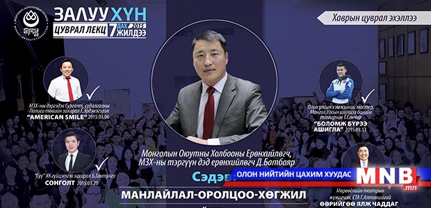 | “Залуу хүн-2015” цуврал лекцийн тав дахь зочноор Д.Батбаяр уригдлаа | ||
