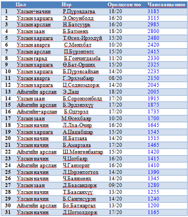 | Шилдэг 32 бөхийн чансаа шинэчлэгджээ | ||