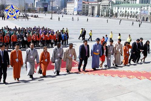 Тухайлбал, Дэлхийн Залуучуудын Ассамблейн Ерөнхийлөгч Идрис Харон, Ерөнхий нарийн бичгийн дарга Эдиола Пашолари, Азийн Залуучуудын зөвлөлийн Ерөнхийлөгч Мухаммед Кир Тоёо, Ерөнхий нарийн бичгийн дарга Азизудин Ахмад, тэргүүтэй төлөөлөгчид хүрэлцэн иржээ. Тэдгээр эрхэм хүндэт зочид Монгол үндэсний хувцсаар ижилссэн нь өнөөдрийн чуулганы өнгө төрхийг чимж байлаа. Маргааш чуулганы нийт төлөөлөгчдөд зориулсан бэсрэг наадам Цонжин болдог цогцолборт болох юм байна. Энэ үеэр хүчит бөхийн барилдаан, хурдан морьдын уралдаан, сур харваа зэрэг үндэсний ёс жаягийг сурталчлах үйл ажиллагааг зохион байгуулахаар болжээ.