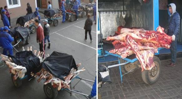 Түүнчлэн орон нутгаас оруулж ирж буй махыг зориулалтын бус тээврийн хэрэгслээр тээвэрлэдэг, махыг буулгах үедээ улавч өмсдөггүй бөгөөд гуталтайгаа махан дээгүүр гишгэдэг, мах зөөвөрлөдөг тэргэ, хадгалдаг пабилон зэрэг нь ариун цэврийн шаардлага хангаагүй бохир, мах шулах байр агааржуулалтгүйгээс цусны нэгширсэн үнэр шингэсэн зэрэг зөрчлүүд илэрсэн байна.
