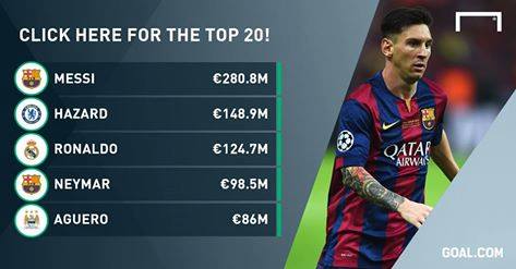 Олон улсын спортын судлалын төв (CIES)-өөс хөлбөмбөгчдийн одоогийн форм, багтаа гүйцэтгэх үүрэг зэргийг нь харгалзан дэлхийн шилдэг 100 тоглогчийн зах зээлийн үнэлгээг гаргажээ. Уг үнэлгээг "Барселона"-гийн од Лионель Месси тэргүүлсэн бол "Челси"-гийн хөдөлгүүр болоод буй Эден Азар өнгөрсөн жилийн Баллон д'Ор-ын эзэн Криштиану Роналдуг ардаа орхин удаалжээ. "Айргийн тав"-д Бразилийн Неймар, Аргентиний Серхио Агуэро нар бичигдсэн байна.
