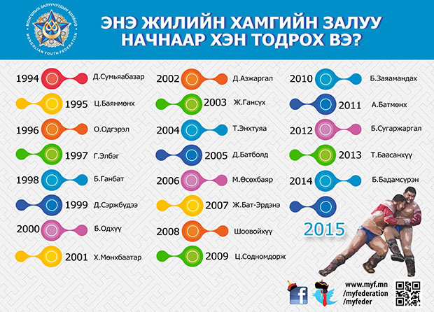 Монголын Залуучуудын холбоо нь Үндэсний их баяр наадмаар тав давж улсын начны болзол хангасан хамгийн залуу начинд хурдан удмын даага бэлэглэдэг сайхан уламжлалтай билээ. Энэ уламжлал 1994 оноос эхэлж, Улсын аварга Д.Сумьяабазар анхны даагыг хөтөлж байсан түүхтэй. Тэрхүү цаг үеэс хойш 21 залуу начин хурдан удмын дааганы эзэн болсноос 10 бөх нь амжилтаа ахиулж цол нэмсэн гэдэг сайхан мэдээ байдаг юм.