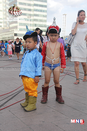 Өнгөрөгч өдрийн бас нэгэн онцлох зүйл нь Үндэсний дээл, хувцсаараа гоёсон бяцхан хүүхдүүд байлаа. Өнгө өнгийн ууж, чимэглэл зүүсэн тэдний зургийг авахаар гадаадын иргэд өмнө нь сөхөрч, басхүү араас нь гүйж байв. Эхлээд хаашаа харахаа мэдэхгүй байсан дээлтэй багачууд сүүлдээ нүүр хагарч өөрсдийн хүсэлтээр зураг авахуулж эхэлсэн. Ингээд дээлтэй багачуудын зурагт анхаарлаа хандуулна уу.