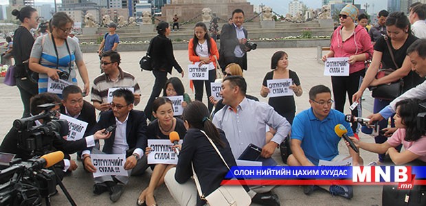 Тэд ажлын эхний өдөр цайны цагаар төв талбайд цуглаж, эсэргүүцлээ илэрхийлсэн юм. Энэ үеэр Монголын сайтын холбооны дэд ерөнхийлөгч Ц.Мөнхбаатар "Сэтгүүлчийг оргон зайлж болзошгүй гэх ямар ч утга авцалдаагүй үндэслэлээр цагдан хорьж байгаа нь үнэн хэрэгтээ "дахин бичиж болзошгүй" гэж хорьж байгаа хэрэг. Ийм үед сэтгүүлч шорон гянданд биш, бичиж нийтлэж буй зүйлийнхээ туйл хүртэл хэвлэн нийтлэх эрх чөлөөгөө эдлэх эрхтэй" хэмээн онцолсон юм.