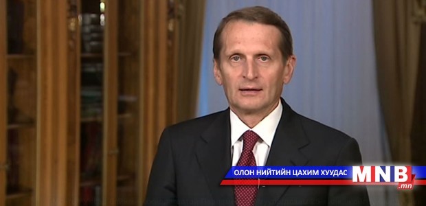 On September 10, 2015, Chairman of the State Duma of the Russian Federation, Mr. Sergey Yevgenyevich Naryshkin has sent a video message addressing the Chairman of the State Great Hural (Parliament), its members and the people of Mongolia.
