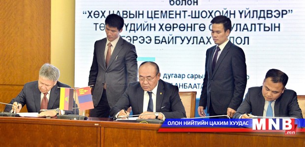 | “Хөх цавын цемент-шохойн үйлдвэр” төслийн хөрөнгө оруулалтын гэрээг үзэглэлээ | ||