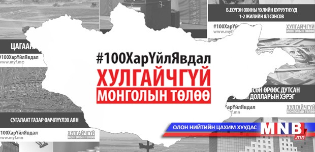 МЗХ 1992 онд батлагдсан шинэ Үндсэн хуулиас хойш өнөөг хүртэлх хугацаанд Монгол Улсын эрх ашиг, үндсэн хууль, үндэсний аюулгүй байдлын эсрэг хийгдсэн 100 хар үйл явдлыг нэрлэн, “Хулгайчгүй Монгол хөдөлгөөн”-ийг орон даяар өрнүүлж буйгаа энэ сарын 2-ны өдөр зарласан юм. Тэгвэл энэхүү ажил өдгөө ид дундаа өрнөж иргэд болон албан байгууллагууд хар үйл явдлуудыг нэрлэж эхлээд байна.