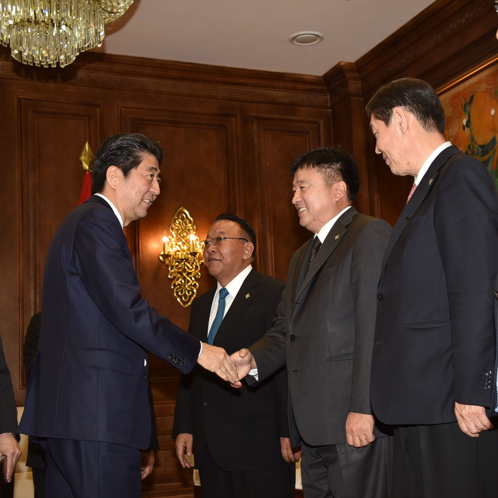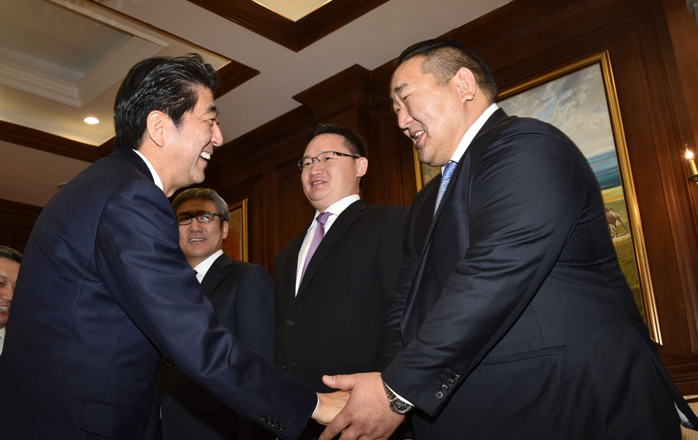 УИХ-ын дарга З.Энхболд уулзалтын үеэр хэлэхдээ, Эрхэмсэг ноён Ерөнхий сайд Ш.Абэ тантай дахин уулзаж буйд баяртай байна. Япон Улстай найрсаг харилцаа, хамтын ажиллагаа хөгжүүлэх нь Монгол Улсын гадаад бодлогын тэргүүлэх чиглэлийн нэг бөгөөд “гуравдагч хөрш” Япон Улстай хөгжүүлж буй Стратегийн түншлэлийн харилцаанд Монгол Улсын төр, засаг өндөр ач холбогдол өгдөг билээ.