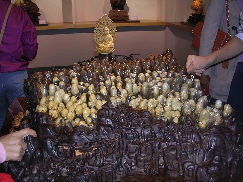 Хачин чулууны музей хэмээх хачин нэртэй энэ музейгээс үнэхээр л хачирхалтай зүйлс олныг харж болно. Алшаа нутагт үлэг гүрвэлийн яс, өндөг, чулуужсан модноос эхлээд хаш, мана зэрэг эрднийн чулуу элбэг. Тэр ч бүү хэл чулуугаар хоол хүртэл урлаж тавина. Одоогоос хоёр жилийн өмнө Алшаад арааны шүлс асгарам амтат идээ ундаа, хоол зууш алаглуулан өрсөн дайллагын тансаг ширээг чулуугаар хийж, үүнийгээ геннисийн номд бүртгүүлжээ. Алшаа аймгийн Баян хотод гаргасан “Чулуун дайллага” хэмээх үзэсгэлэнд байгалийн бүх төрлийн чулуугаар өнгө алаглуулан бүтээсэн 6000 гаруй хоол зууш бүхий 105 ширээ тавигдсан байсан гэнэ.
