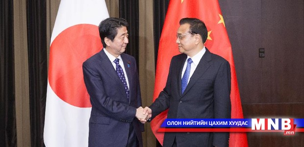Өчигдөр БНХАУ, Япон, БНСУ-ын гурван талт дээд хэмжээний уулзалтын дараа Японы ерөнхий сайд Шинзо Абэ, Хятадын төрийн зөвлөлийн ерөнхий сайд Ли Кэцян нар хоёр талт уулзалт хийжээ. Нэг цаг гаруй үргэлжилсэн энэ уулзалтаар хоёр орны харилцаа, хамтын ажиллагааг сайжруулах арга замуудыг хэлэлцсэн байна.