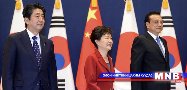 БНХАУ, БНСУ болон Япон улсын төр засгийн тэргүүн нар сүүлийн 3 жил гаруйн хугацаанд анх удаа дээд хэмжээнд уулзалт хийлээ. Энэхүү дээд хэмжээний уулзалтын хүрээнд БНХАУ-ын төрийн зөвлөлийн ерөнхий сайд Ли Кэцьян, БНСУ-ын ерөнхийлөгч Пак Кын Хе, Япон улсын ерөнхий сайд Шинзо Абэ нар улс төр, эдийн засгийн харилцаагаа сайжруулахад шийдвэртэй алхам хийхээр тохиролцсон байна.