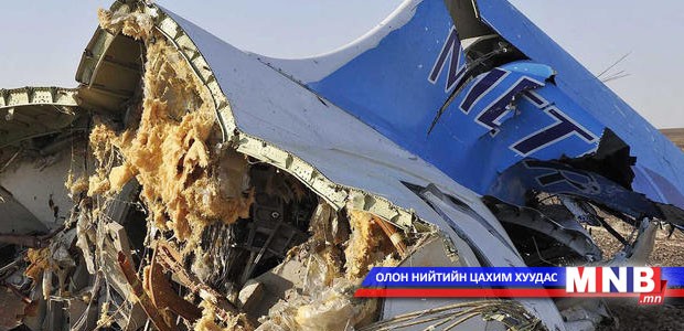 ОХУ-ын “КогалымАвиа” нисэх компанийн А321 онгоц өнгөрсөн аравдугаар сарын 31-нд Египетийн Синайн Хойгт осолдож, 224 хүний амь эрсэдсэн. Тэгвэл онгоцны сэг зэмд хийсэн шинжилгээгээр тэсрэх бодисын ул мөр илэрсэн талаар ОХУ-ын Холбооны аюулаас хамгаалах албаны дарга Александр Бортников өнөөдөр ерөнхийлөгч Путинд мэдээллээ.