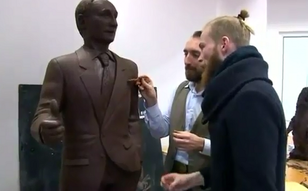 Оросын уран барималч Никита Гусев ерөнхийлөгч Путины биеийн өндөр, жин болон бусад харьцааг нарийн судалсны дүнд, шоколадан баримлыг яг тэр хэмжээгээр бүтээсэн байна. Мөн Путины барималтай хамт түүний Конни нэртэй лабрадор үүлдрийн нохойг шоколадаар урлажээ. Энэ баримлыг дуусгахад нийтдээ 70 гаруй кг шоколад ашигласан байна. Санкт Петербургийн үзэсгэлэн худалдааны үеэр олон нийт энэ барималд хүрэх, долоох, хазахыг хориглох ажээ.