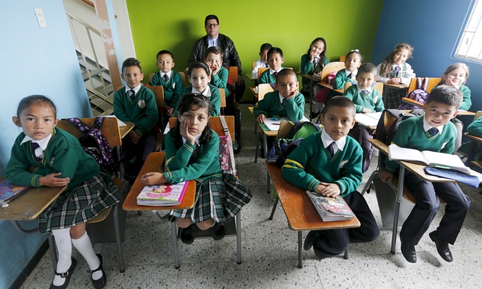 Соача өөртөө засах муж дахь Семиллас де Эсперенза сургуулийн 4-р ангийн сурагчид багш Хуан Умберто Крузийн хамт