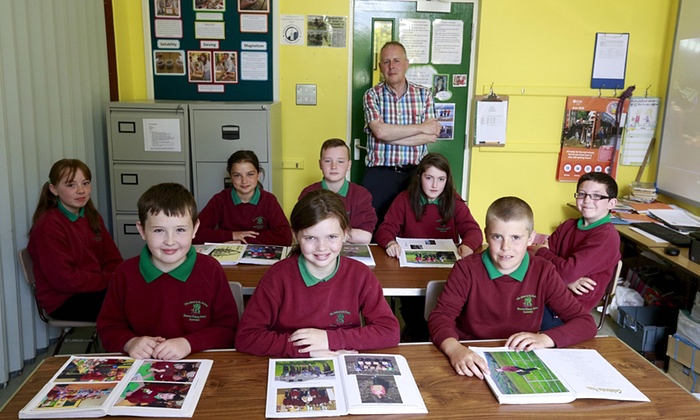 Антрим мужийн захад байрлах Кушендалл тосгоны бага сургуулийн 8 сурагч сургуулийн захирал, багш Клөүсийн хамт