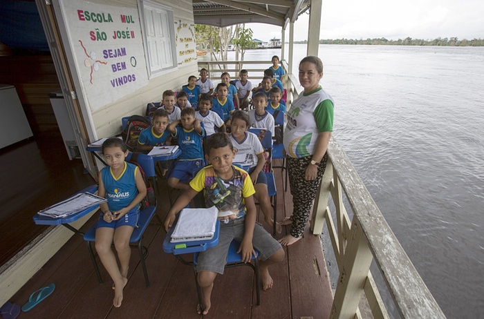 Амазонс мужийн нийслэл Манаус дүүргийн завин дээрх сургууль. Газар зүйн онцлогоос хамааран гол мөрний дунд байшин барьж эсхүл завин дээр хичээлээ хийдэг байна.