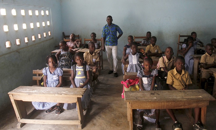 4.4 сая хүн амтай Абижан хотын EPV Синай бага сургууль. Хуучнаар Зааны ясан эрэг гэгддэг байсан энэ улсын хүн амын 60% нь бичиг үсэгтэй.