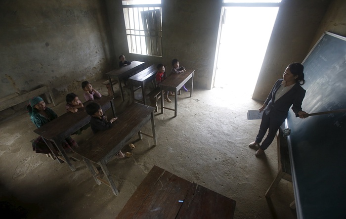 Ханой хотын хойд хэсгийн Дунг Ван дүүрэгт байрлах бага сургуулийн 3-р ангийн сурагчид. Тэдний сургуульд ном, цахилгаан аль нь ч байхгүй.