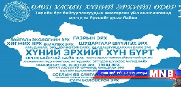Иргэний нийгмийн байгууллагууд “Хүний эрхийг хамгаалагчдыг хамгаалъя” сэдэвт нээлттэй цуглааныг өнөөдөр зохион байгууллаа. Өөрийн болон хэн нэгний эрх, эрх чөлөөг хамгаалах зорилгоор тэмцэж байгаа хүн бүр хүний эрхийн хамгаалагчид байдаг. Гэтэл манай улсад тэднийг хамгаалах, үйл ажиллагааных нь баталгааг хангах хууль эрхзүйн орчин бүрдээгүй. Үүнээс болж хүний эрхийг хамгаалагчдын эрх зөрчигдөж, амь нас эрүүл мэндээрээ хохирч байна гэж тэд үзэж байгаа юм.