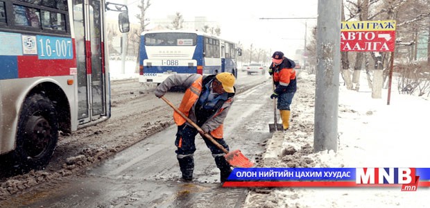 Ойрын өдрүүдэд цас их орсноос замын халтиргаа, гулгаа ихэссэн. Тиймээс Нийтийн үйлчилгээний Улаанбаатар нэгтгэлийн мэргэжилтнүүд болон дарга нар замын цас цэвэрлэх ажилд оролцож эхэлжээ.
