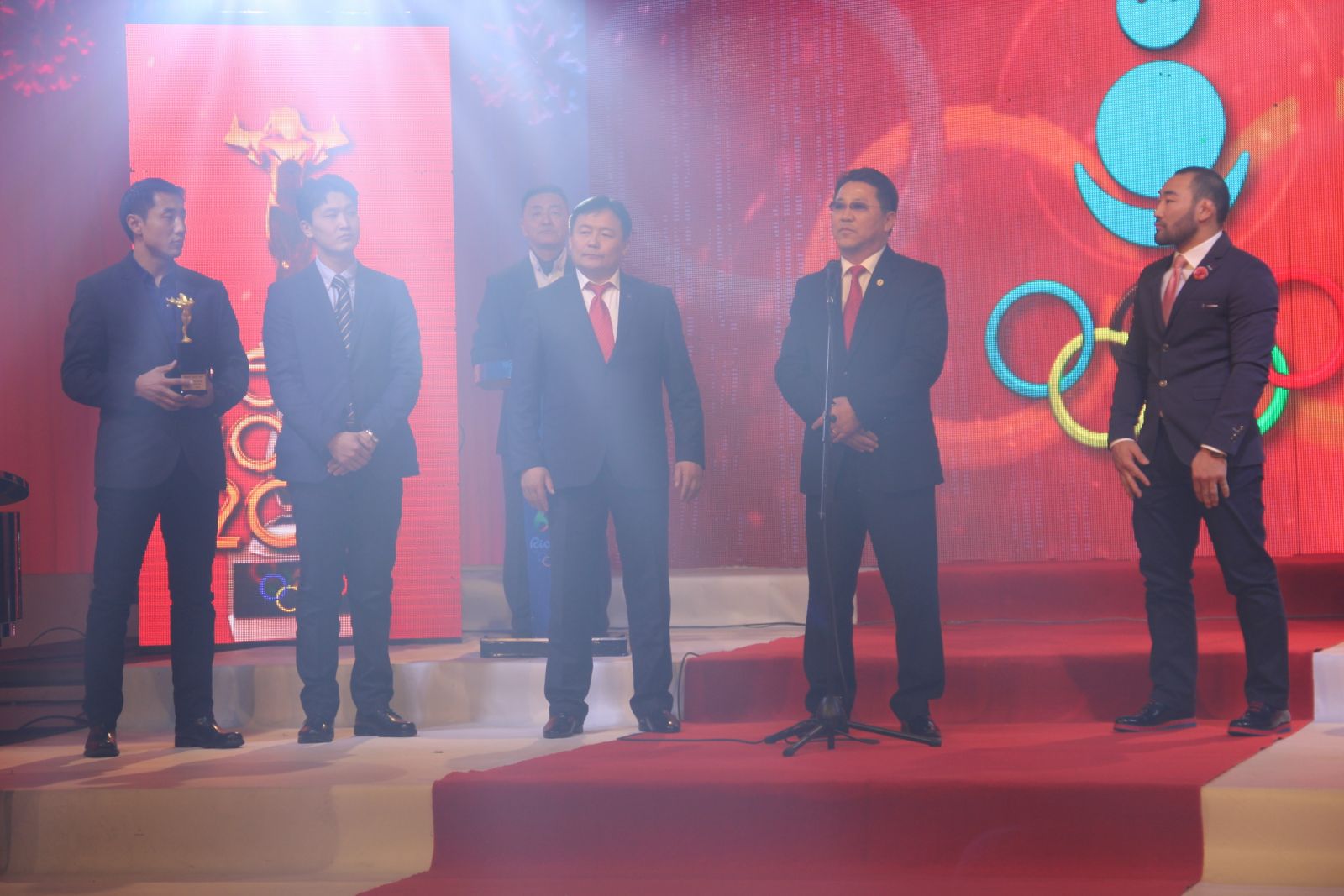 Чөлөөт бөхийн ДАШТ-ий хүрэл, Ази тивийн АШТ-ий алт, "Алтан гран-при" тэмцээний мөнгө, хүрэл медаль хүртэж, "Рио-2016" Олимпийн эрх авсан Э.Бэхбаяр. Тэрбээр гадаадад тэмцээнд оролцож буй тул Монгол Улсын гавьяат тамирчин, түүний багш А.Энхээ гэр бүлийн хүний хамт гардсан юм.