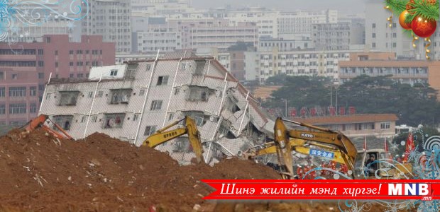 Хятадын Гуандун мужийн Шэньжэнь хотод хөрсний гулгалт болсноос хойш долоо хоног өнгөрч байна. "Синьхуа" агентлагийн мэдээлж байгаагаар нурангид дарагдан долоон хүн амь үрэгдсэн, 75 хүн одоог хүртэл ор сураггүй байна. Хөрс гулгах үеэр 33 барилга нурж, шавар шороонд дарагдсан, мөн ойролцоох байгалийн хийн хоолой дэлбэрсэн юм. Одоогоор эрлийн багийнхан нурсан хөрс шороон дороос хүмүүсийг үргэлжлүүлэн хайж, энэ ажилдаа газар ухах тоног төхөөрөмж ашиглаж байна.