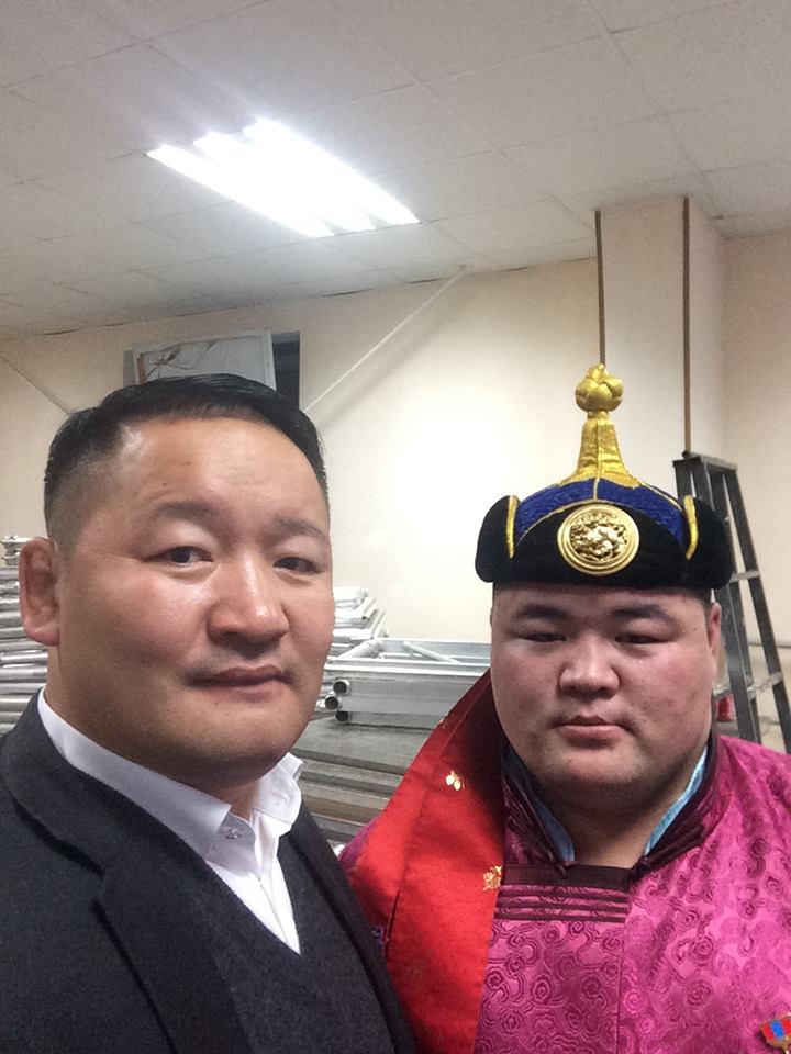 Улсын начин Б.Одхүү, улсын арслан Э.Оюунболдын хамт.