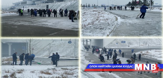 | Дархан-Уул аймаг авто замынхаа цас, мөсийг цэвэрлэж байна | ||