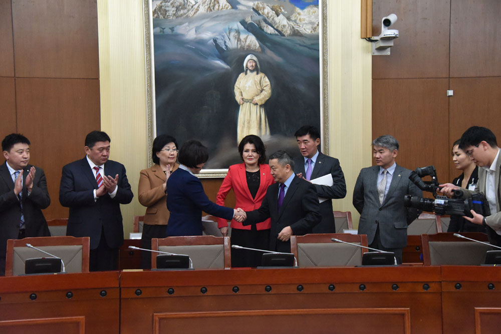 Мөн УИХ-ын дарга З.Энхболд уг захирамжийг Төрийн ордны Байнгын хорооны хуралдааны “А” танхимд УИХ дахь Ардчилсан намын бүлгийн дэд дарга С.Одонтуяад гардуулсан юм.