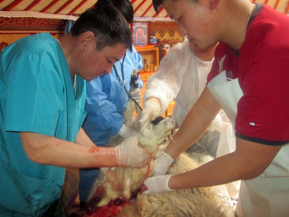 -Гучин-Ус сумын хувьд анхны тохиолдол болж байна. Гэхдээ энэ хагалгааг би ганцаараа хийгээгүй. Хөдөө очиж, хагалгаа хийх шаардлага гарсан учраас аймгийн ХХААГ-ын Мал эмнэлэгийн хэлтсийн халдвартын их эмч Ё.Гэрэлт-Одоор ахлуулсан эмч нарыг дуудаж, хамтдаа хагалгааг гүйцэтгэсэн. Малчдын хувьд бол тухайн хонь өмнө нь хэд хэдэн удаа ихэрлэж байсан учраас энэ удаагийн төлөлт ч бас ихэр гэж бодож байсан юм билээ. Тэгээд хургалах болоод ирсэн чинь хонь их ивэрлээд ирсэн учраас эмч нарын тусламж авах шаардлагатай болсон хэрэг.