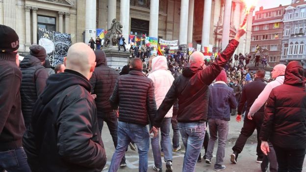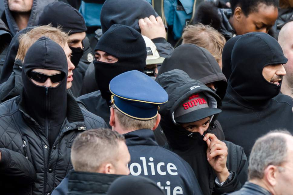 Брюсселийн хөрөнгийн төв биржийн урд товлогдсон жагсаал ерөнхийдөө тайван байдалтай зохион байгуулагдсан боловч хар хувцас өмссөн бүлэг жагсагчид "Исламын улс" бүлэглэлийн эсрэг уриа үг хашгиран Биржийн өмнөх талбайд орж ирж эмх замбараагүй байдал үүсгэжээ.