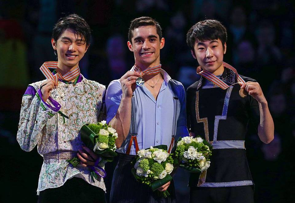 Харин II байрт Японы тамирчин 2014 оны Сочигийн олимпийн аварга, дэлхийн аваргын мөнгө хүрэл медальт Юузуру Ханю, III байрт БНХАУ-ын тамирчин Бояанг Жин орсноор дэлхийн аваргаас медаль авсан анхны хятад тамирчин болсон байна.