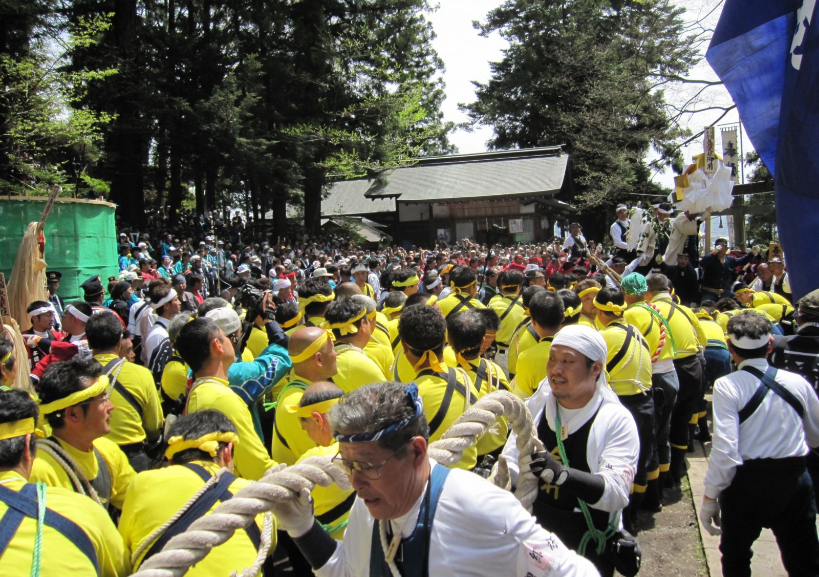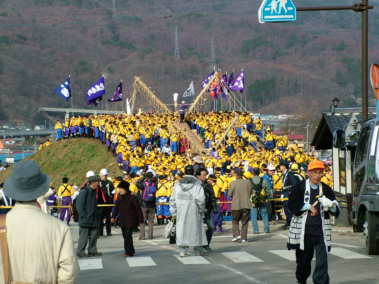 Өчигдөр энэ наадмын гол үйл ажиллагаа болох “Киотоши” буюу “мод унагах ёслол” болж өнгөрсөн байна. Энэ хүрээнд 17 метр урт, 10 тонн жинтэй аварга гуалин модыг унаган, өнцөгт нь жижиг гуалингуудыг босгон бэхэлжээ. Дараа нь эдгээр гуалин дээр шинто шашинт эрэгтэйчүүд суун, уулын уруу гулгах ёслолыг үйлдсэн байна. Энэ үеэр үзэгч олон цуглан, гэмтэх бэртэх, амиа алдах магадлал ч өндөртэй “Киотоши” ёслолд оролцож байгаа эрчүүдийн зориг зүрхийг уухайлан шагшиж байлаа.