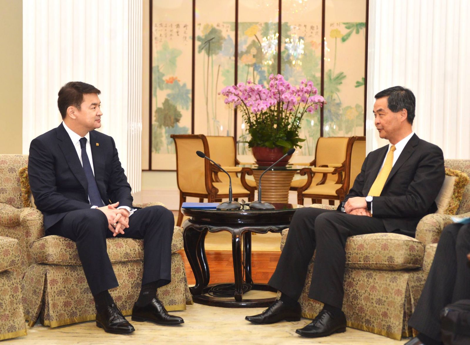 БНХАУ-ын Засаг захиргааны онцгой бүс Хонгконгт зохион байгуулагдсан Азийн хөрөнгө оруулалтын чуулга уулзалтын үеэр Монгол Улсын Ерөнхий сайд Ч.Сайханбилэг Хонгконгийн Ерөнхий захирагч Лян Жөн-Ин-г хүлээн авч уулзлаа. Уулзалтын үеэр Монгол Улс, БНХАУ-ын Засаг захиргааны онцгой бүс Хонгконг хоорондын хамтын ажиллагаанд үнэлэлт дүгнэлт өгч, цаашид ямар чиглэлээр хамтран ажиллах талаар ярилцсан юм.